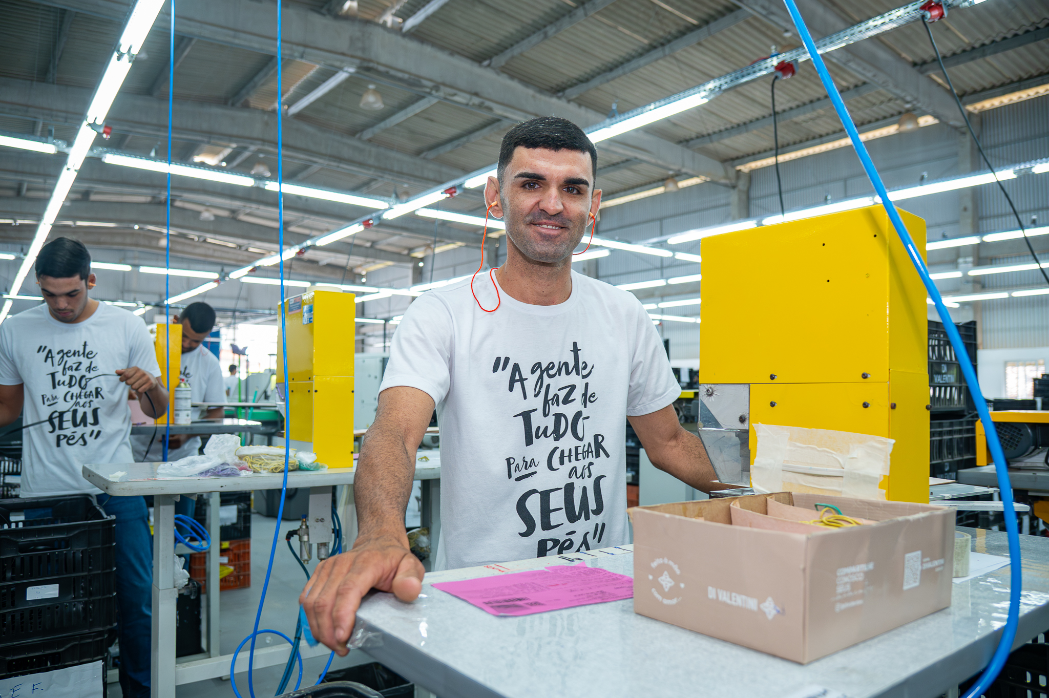 Bruno Góes Andrade, 29 anos, natural de Ribeirópolis, relembra os meses em que ficou desempregado, após o fechamento de outra fábrica. Hoje, empregado novamente, celebra a estabilidade. Ao lado da esposa, que também conquistou uma vaga, ele destaca a importância do trabalho para reconstruir a vida familiar. “Foi muito difícil, cheguei a trabalhar no campo para não ficar parado. Quando a Di Valentini chegou, não pensei duas vezes. Hoje, eu e minha esposa trabalhamos aqui, temos duas rendas e conseguimos planejar nossa vida com mais tranquilidade. É gratificante saber que o que produzimos chega aos pés de pessoas no Brasil e no mundo. O emprego transformou as nossas vidas”, contou.
