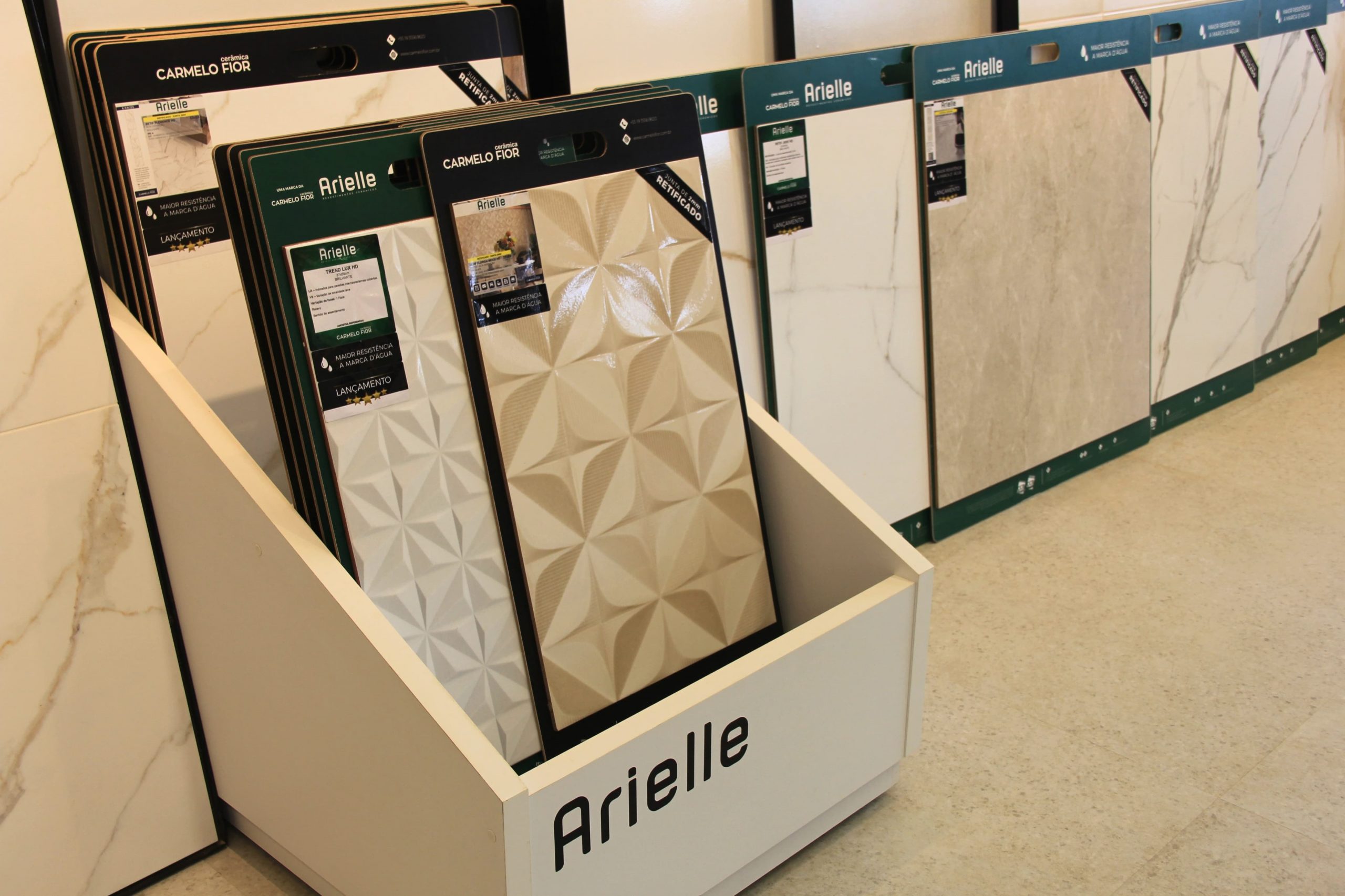 Ainda de acordo com o gerente industrial, após o estudo, a matéria-prima é então levada para a fábrica, onde é misturada em um blend e moída para alcançar a granulometria correta. “Em seguida, o material moído passa pela prensa para conformação e depois pela esmaltação para conferir características como impermeabilidade, brilho ou antiderrapância. Após a decoração, as peças são queimadas em forno e depois esfoliadas, retificadas, embaladas e armazenadas no estoque”, descreve Wolber. Cerca de 80 variedades de produtos compõem o catálogo da marca própria Arielle.
